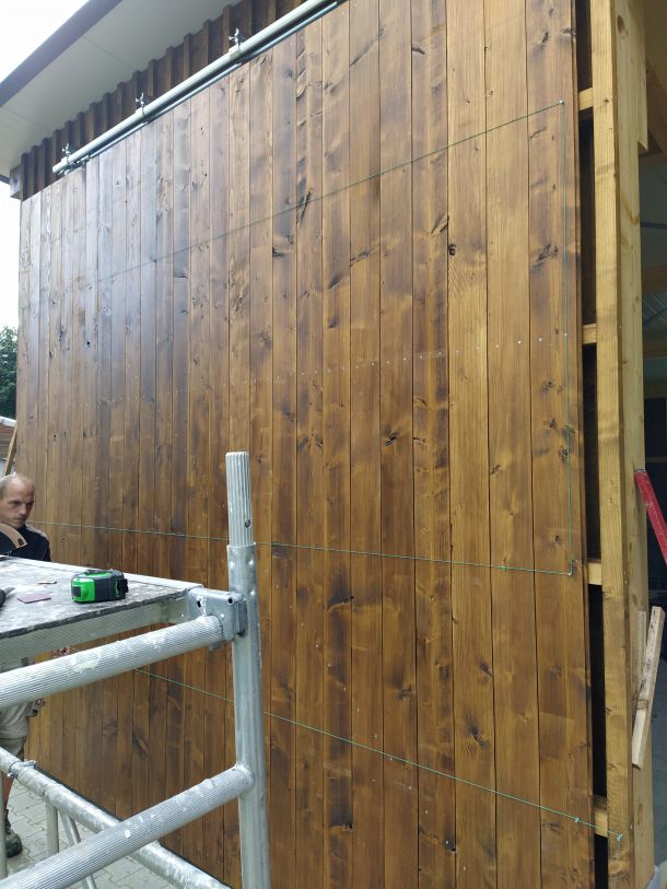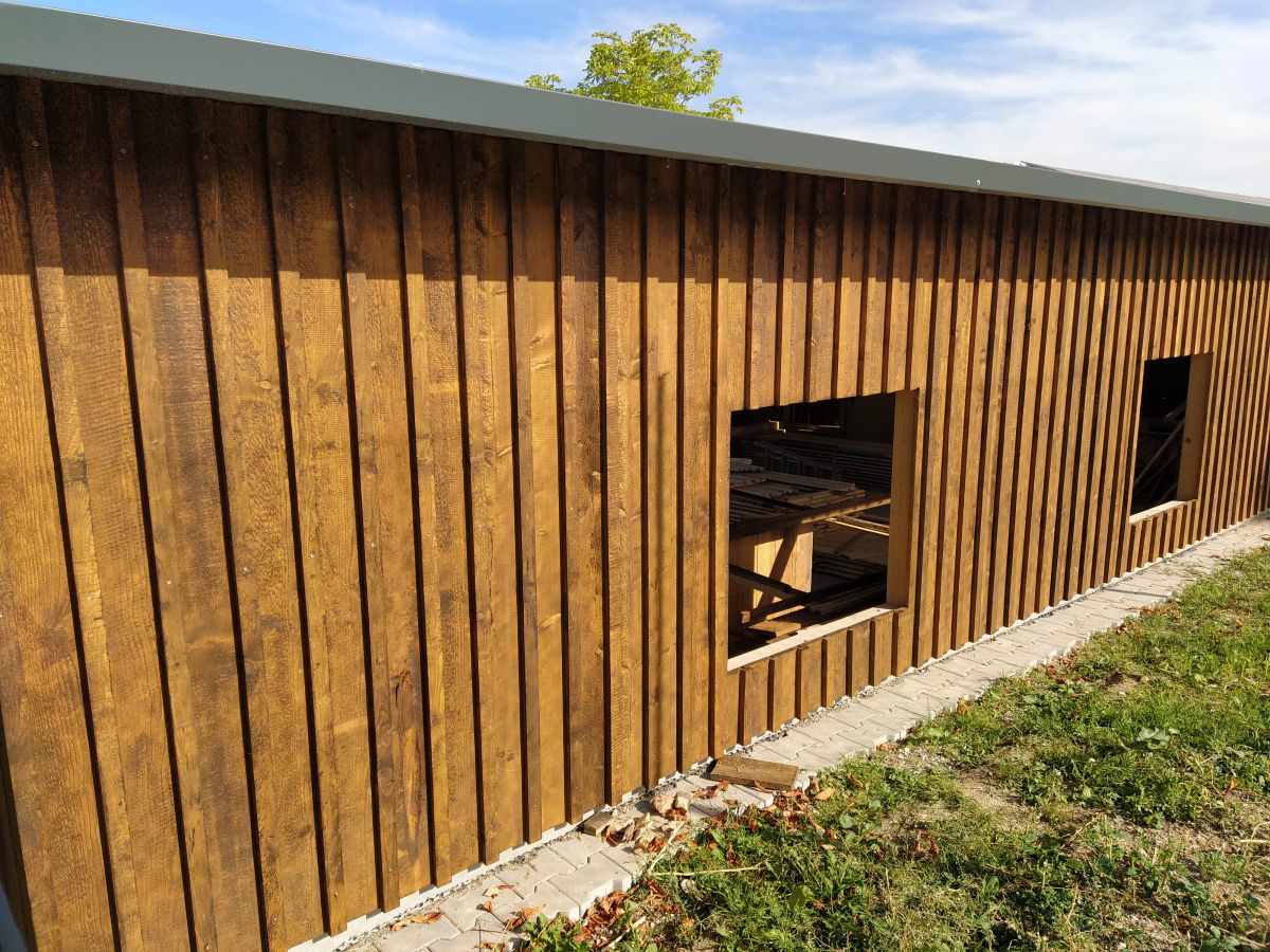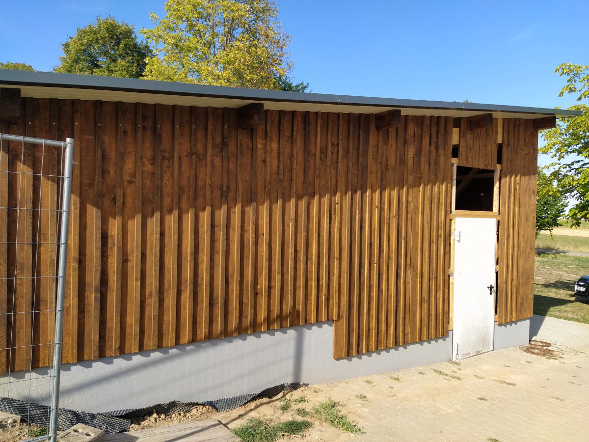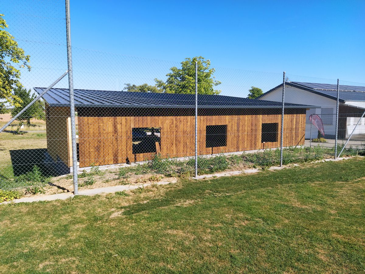Gerade in der Sommerpause angekommen ging Holger Koch nun voller Tatendrang daran, die Fertigstellung des Schuppens bis Herbst hinzubekommen. Die vom Forstbetrieb Muth gespendeten Bäume gingen ins Sägewerk, wurden dann anschließend gesägt, in unzähligen Stunden angemalt und schließlich angebracht. Fenster und Türen wurden gesetzt und am Schluss die beiden Rolltore gefertigt und installiert. So konnte pünktlich zum einsetzenden Herbst der Schuppen in Betrieb genommen werden, so dass nun alle Maschinen dort stehen wo sie gebraucht werden, um auch in Zukunft für top gepflegte Rasenplätze auf unserem Sportgelände zu sorgen.