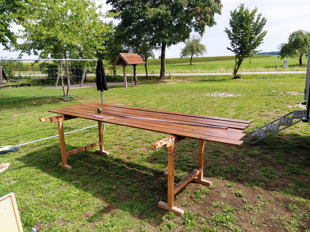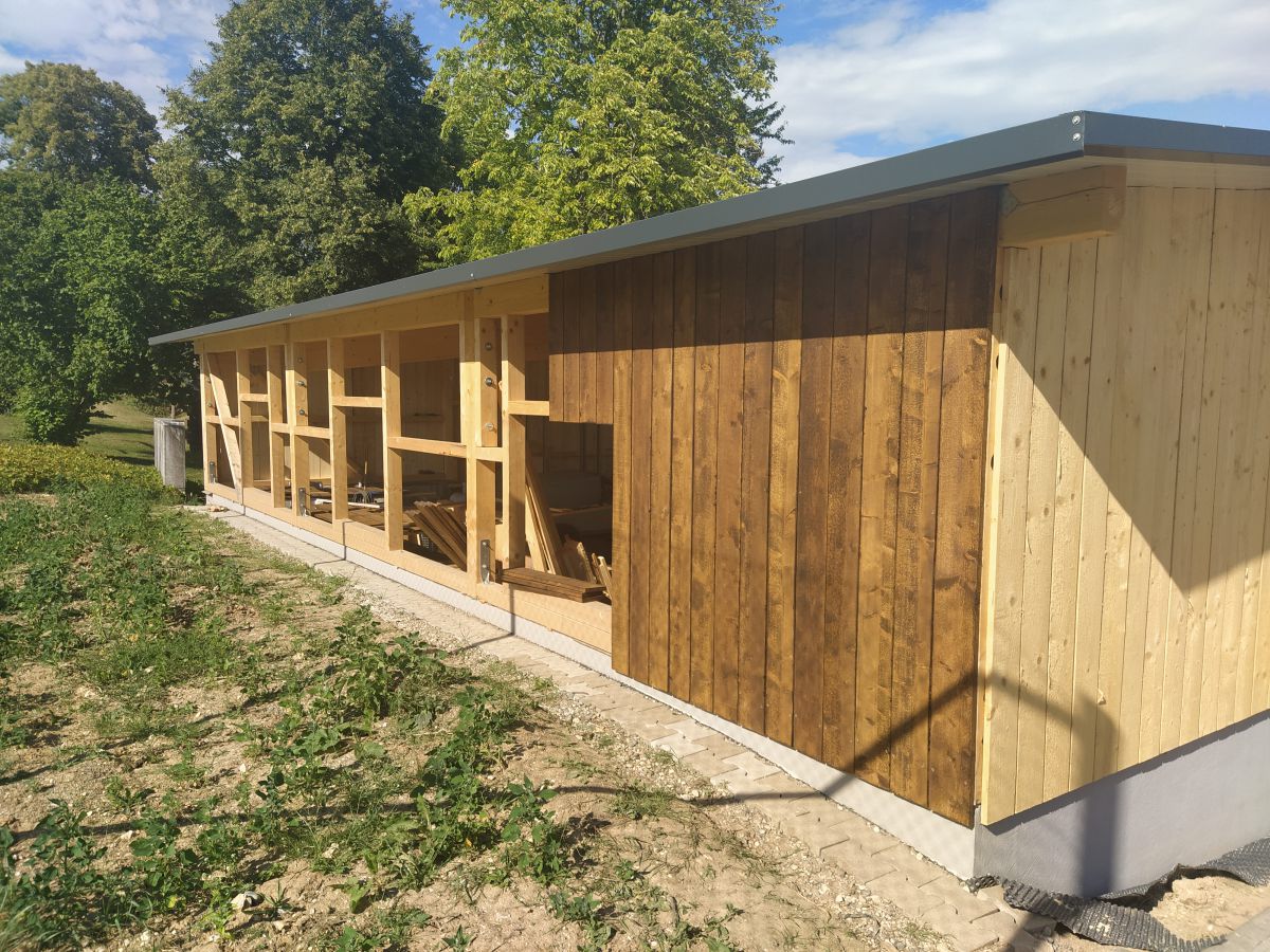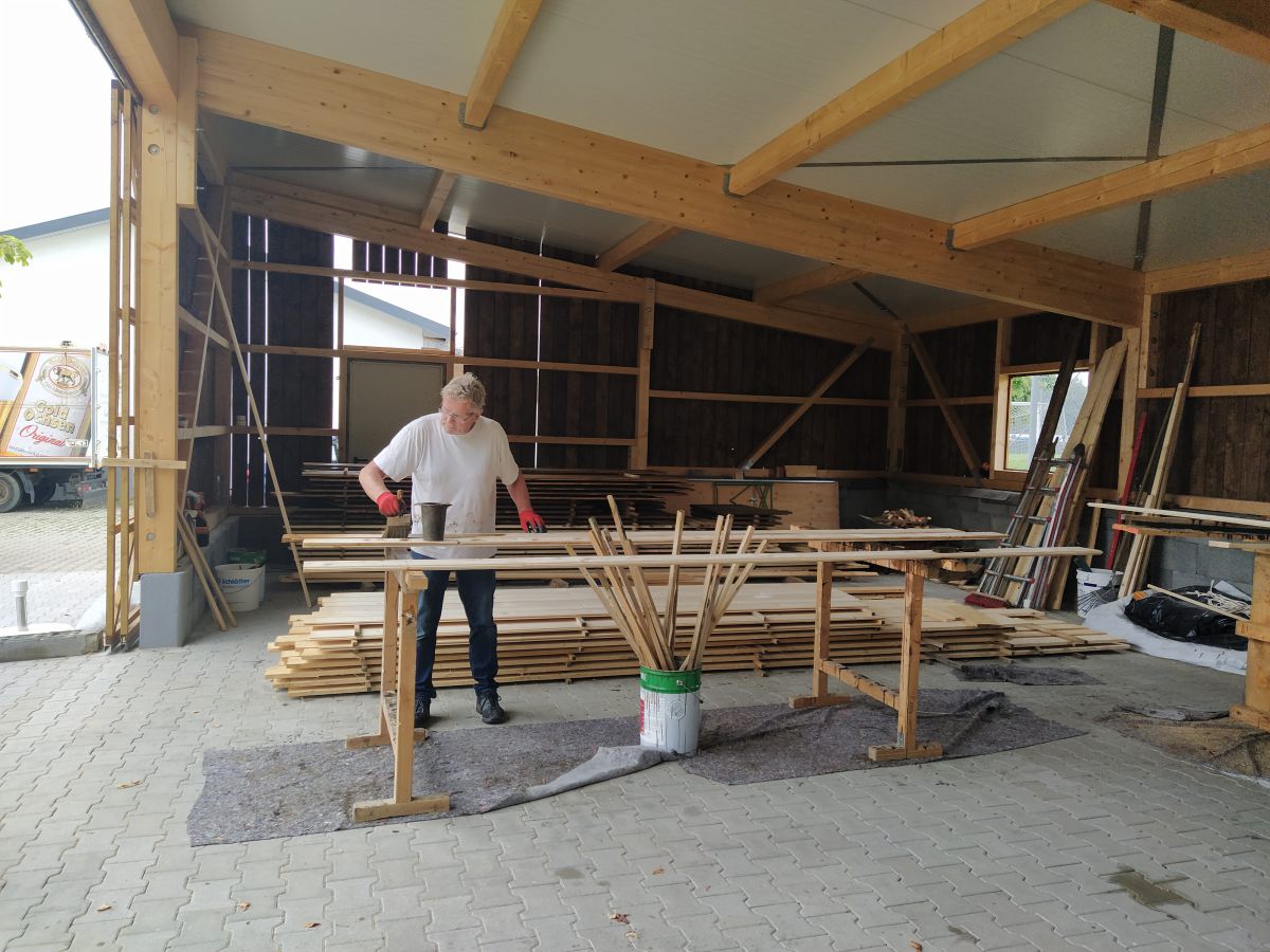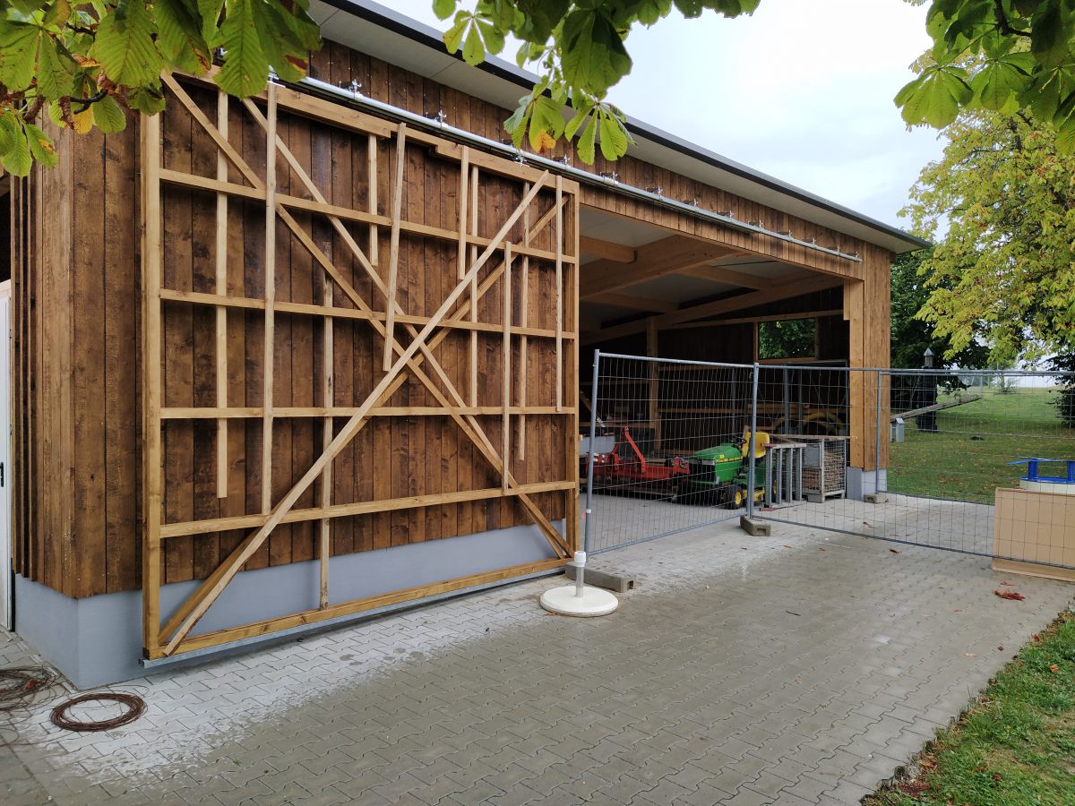 So legte Thomas Kröner dem Ausschuss in der Sitzung vom 29. März 2021 einen Plan zum Bau eines Maschinenschuppens vor. Auch hatte er bereits ein Angebot der Firma Holzbau Max Mayer, Rammingen vorliegen. Da wir uns jedoch inmitten der Corona-Zeit befanden, unterlag dieses Angebot einer Gültigkeit von 6 Wochen. So war jedem klar, je länger wir warten, umso mehr bezahlen wir. Das Holz für die angedachte Deckelschalung würde der Forstbetrieb Muth unserem Bau spenden.