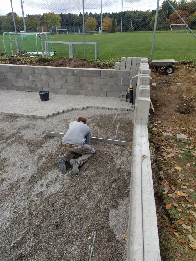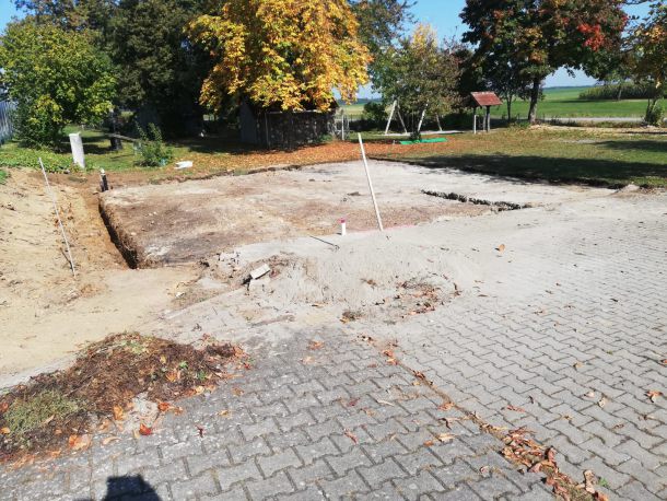 Als dann Anfang Oktober die behördlichen Dinge alle geregelt waren und wir unseren roten Punkt, sprich die Baufreigabe hatten, wurde auch umgehend losgelegt. Am 08. Oktober starteten die Erdarbeiten mit Hilfe von Frank Buntz, eine Woche später folgten die Grundmauern und schon am 23. Oktober konnten wir die Pflasterarbeiten im und vor dem Schuppen beginnen. Zeitgleich startet am 15. Oktober unser Crowd-Funding und brachte bis zum Abschluss am 03. Februar 2022 über 6.500€ ein. Eine wahnsinnig tolle Unterstützung aller Spender, für die wir uns nur immer wieder bedanken können.