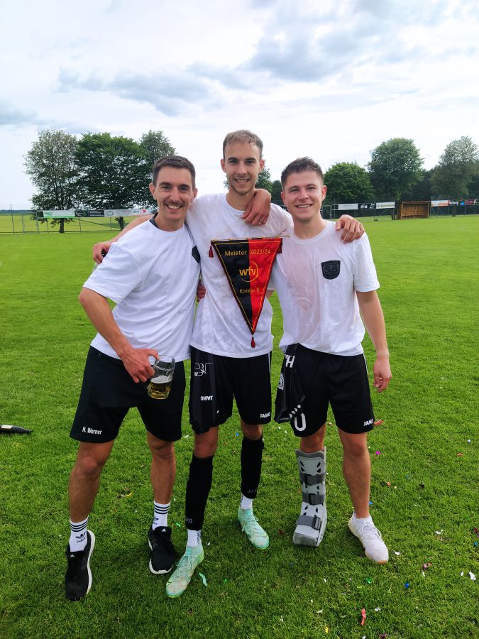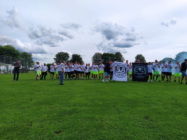 Diese Saison hat nun alles gepasst obwohl es anfangs nicht so aussah. Hatte man in der Sommerpause mit Jannis Böttcher, Moritz Rittlinger, Nikolai Werner, Elias Werner, Maik Fleischer und Asef Heidari einige Neuzugänge in Ballendorf begrüßen dürfen, die die Breite des Kaders deutlich verbesserten, so stand man nach 6 Spieltagen nur auf Platz 6 der Tabelle und hatte bereits 6 Punkte Rückstand auf die Spitze. Und doch hielt die Mannschaft zusammen, schaute von Spiel zu Spiel und nach dem 12. Spieltag mit dem Heimsieg gegen Berghülen waren allen klar, dass es zu einem Dreikampf kommen würde und absolut alles möglich ist. Dies wurde unterstrichen durch das Trainingslager in Telfs während der Wintervorbereitung. Spätestens hier wurde dem letzten klar, dass es diese Saison galt. Und mit dem Wechsel von Louis Heinrich in der Winterpause zum SVB gelang der Abteilungsleitung ein weiterer Coup. So steht nun der Gewinn der Meisterschaft 2023/24 in den Geschichtsbüchern und die Spieler feierten bis tief in die Nacht ihren sportlichen Erfolg. Gleichzeitig freuen sie sich schon jetzt auf viele spannende Spiele und Derbys in der kommenden Saison.