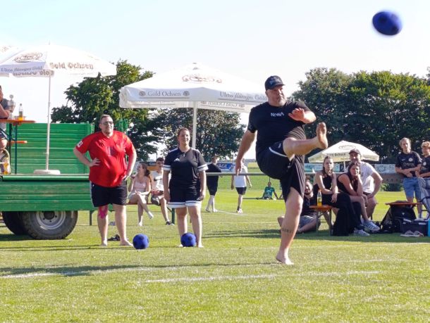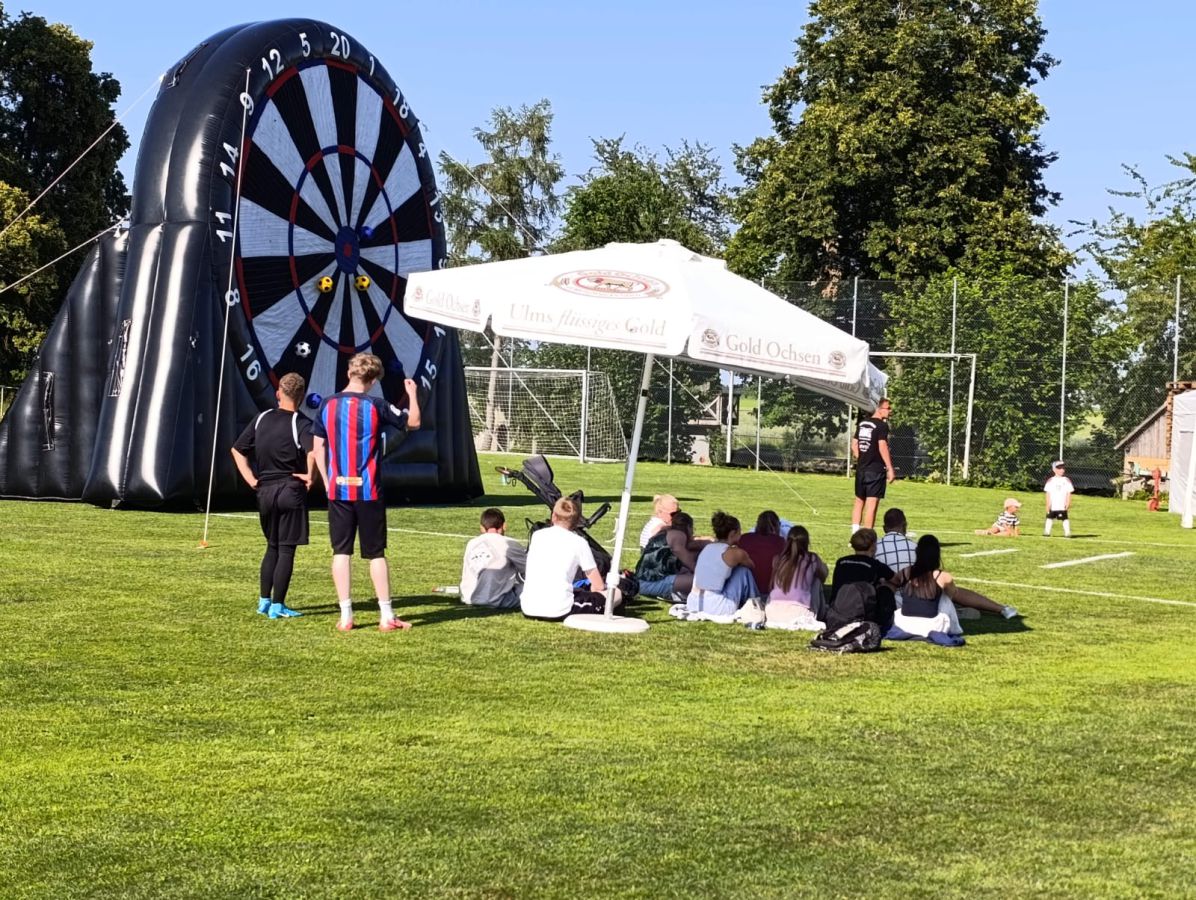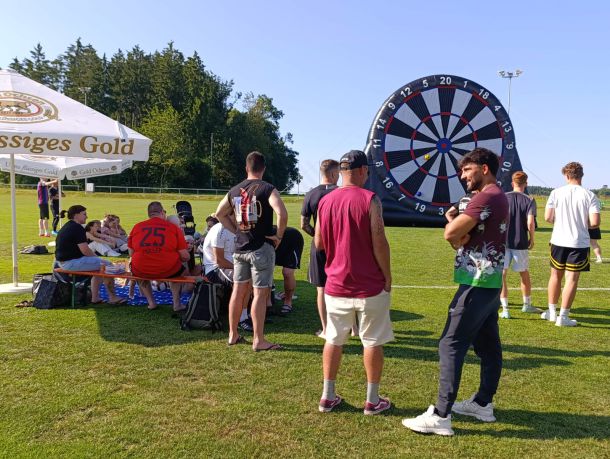 Im anschließenden FootDart-Turnier, welches ein 16er-Teilnehmerfeld umfasste, wurden zunächst 2 Gruppen gebildet und jeder gegen jeden gespielt. Die beiden jeweils besten Teams kamen ins Halbfinale, der Rest ging direkt in die Platzierungsspiele. Dabei konnte sich das lokale Team „Schlimmer geht immer“ in einem packenden Finale gegen „Widerstand ist zwecklos“ den Triumph sichern.
