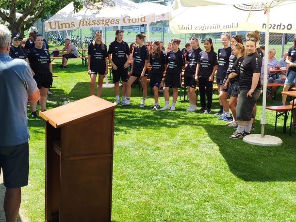 Der Sonntagvormittag eröffnete mit dem traditionellen Gottesdienst unter freiem Himmel im Schatten unserer Bäume. Nach dem anschließenden Mittagessen gab es dann die Wimpelübergabe durch Hans Schmid an unsere B-Juniorinnen der SGM AlBaOb. Die Mannschaft hatte mit 9 Siegen und 3 Niederlagen in der Kreisstaffel die Meisterschaft geholt.