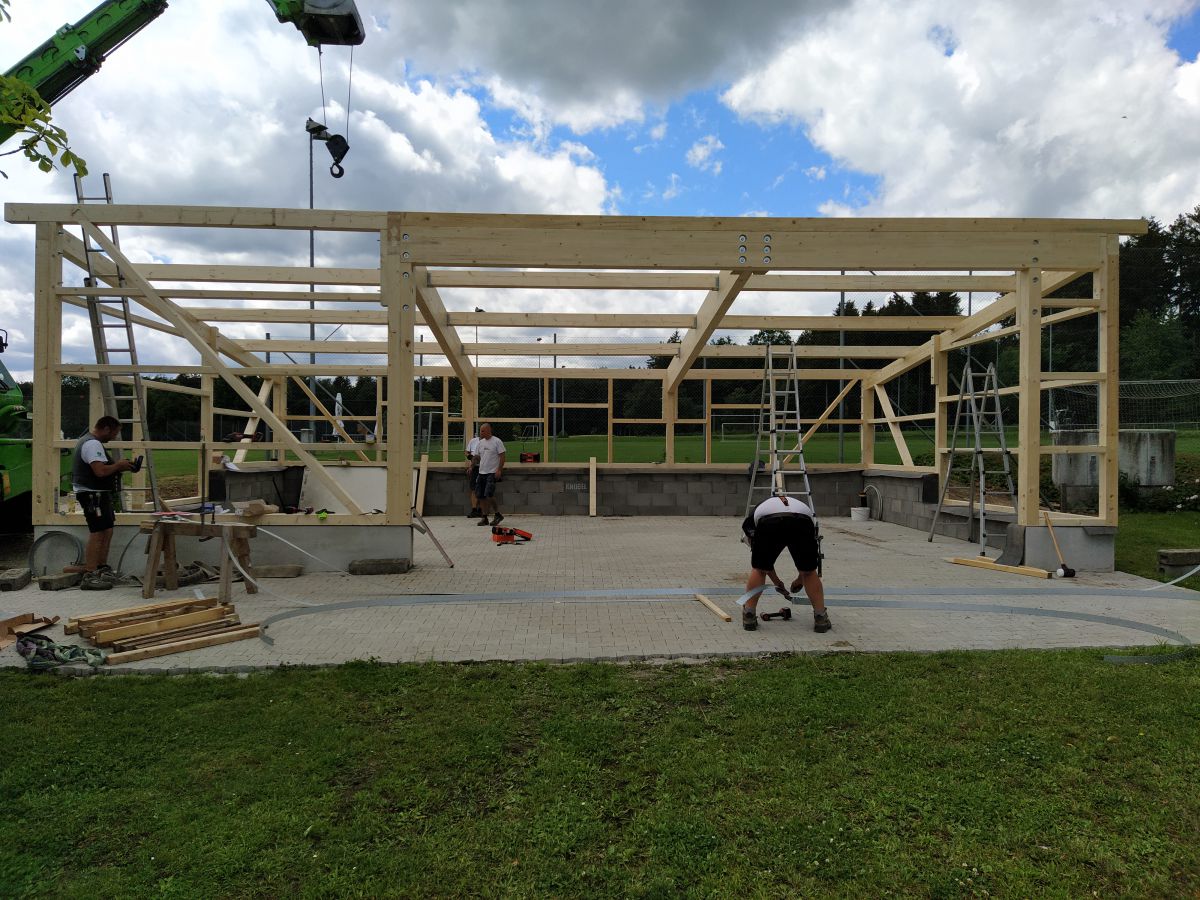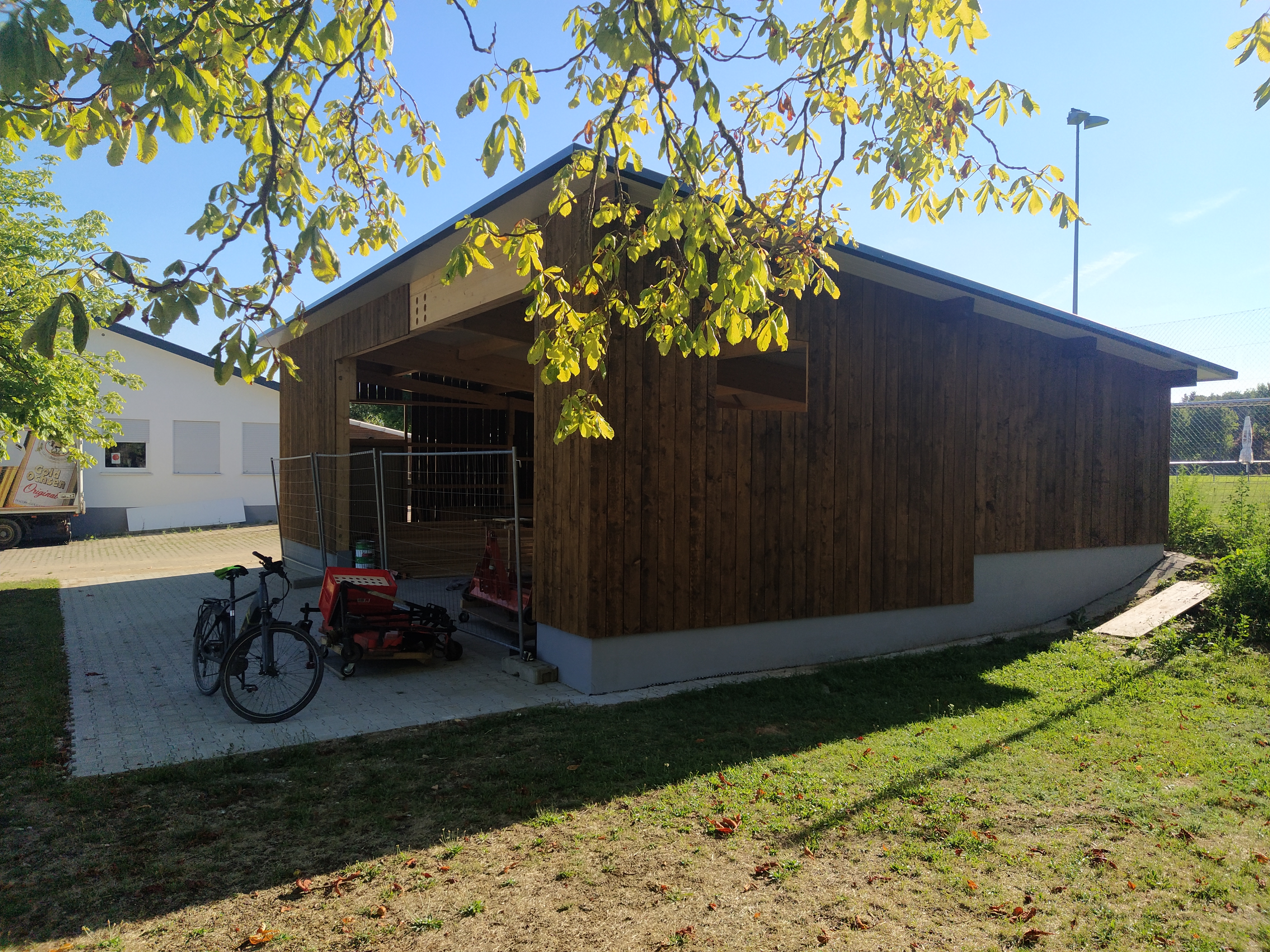 So legte Thomas Kröner dem Ausschuss in der Sitzung vom 29. März 2021 einen Plan zum Bau eines Maschinenschuppens vor. Auch hatte er bereits ein Angebot der Firma Holzbau Max Mayer, Rammingen vorliegen. Da wir uns jedoch inmitten der Corona-Zeit befanden, unterlag dieses Angebot einer Gültigkeit von 6 Wochen. So war jedem klar, je länger wir warten, umso mehr bezahlen wir. Das Holz für die angedachte Deckelschalung würde der Forstbetrieb Muth unserem Bau spenden.