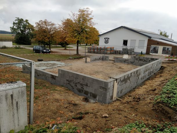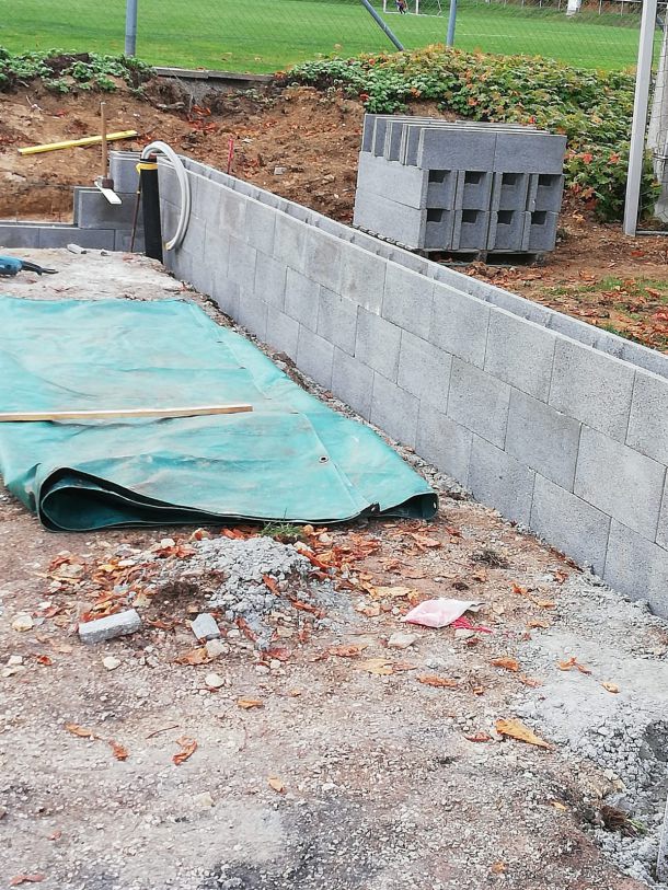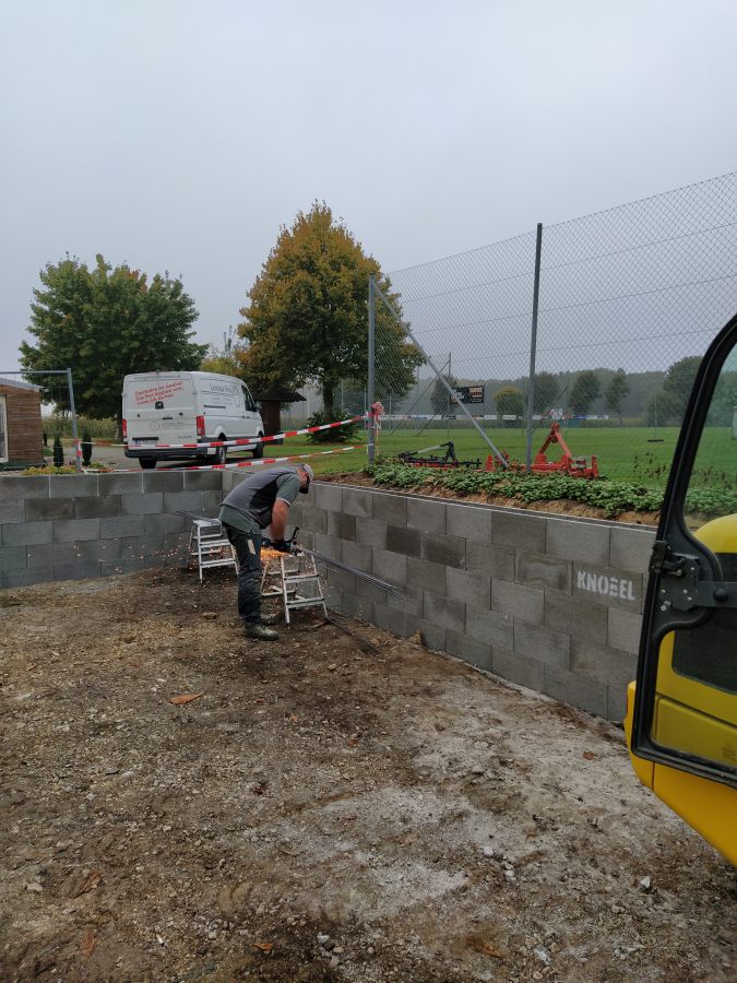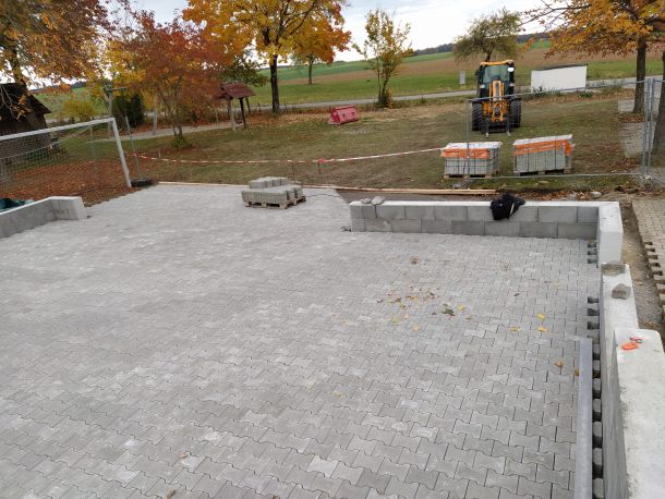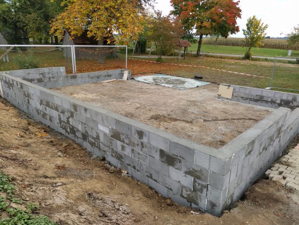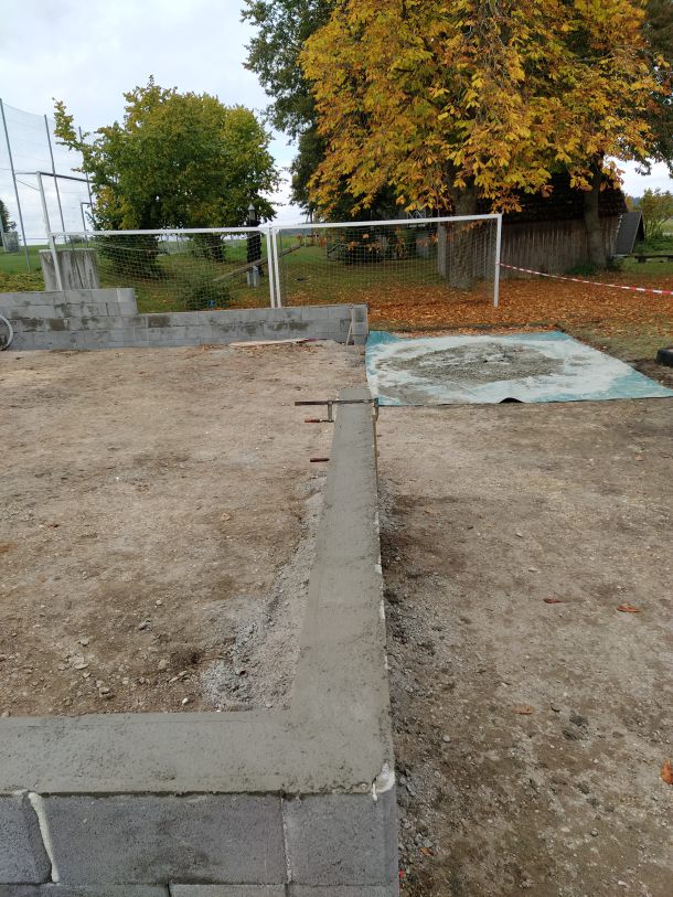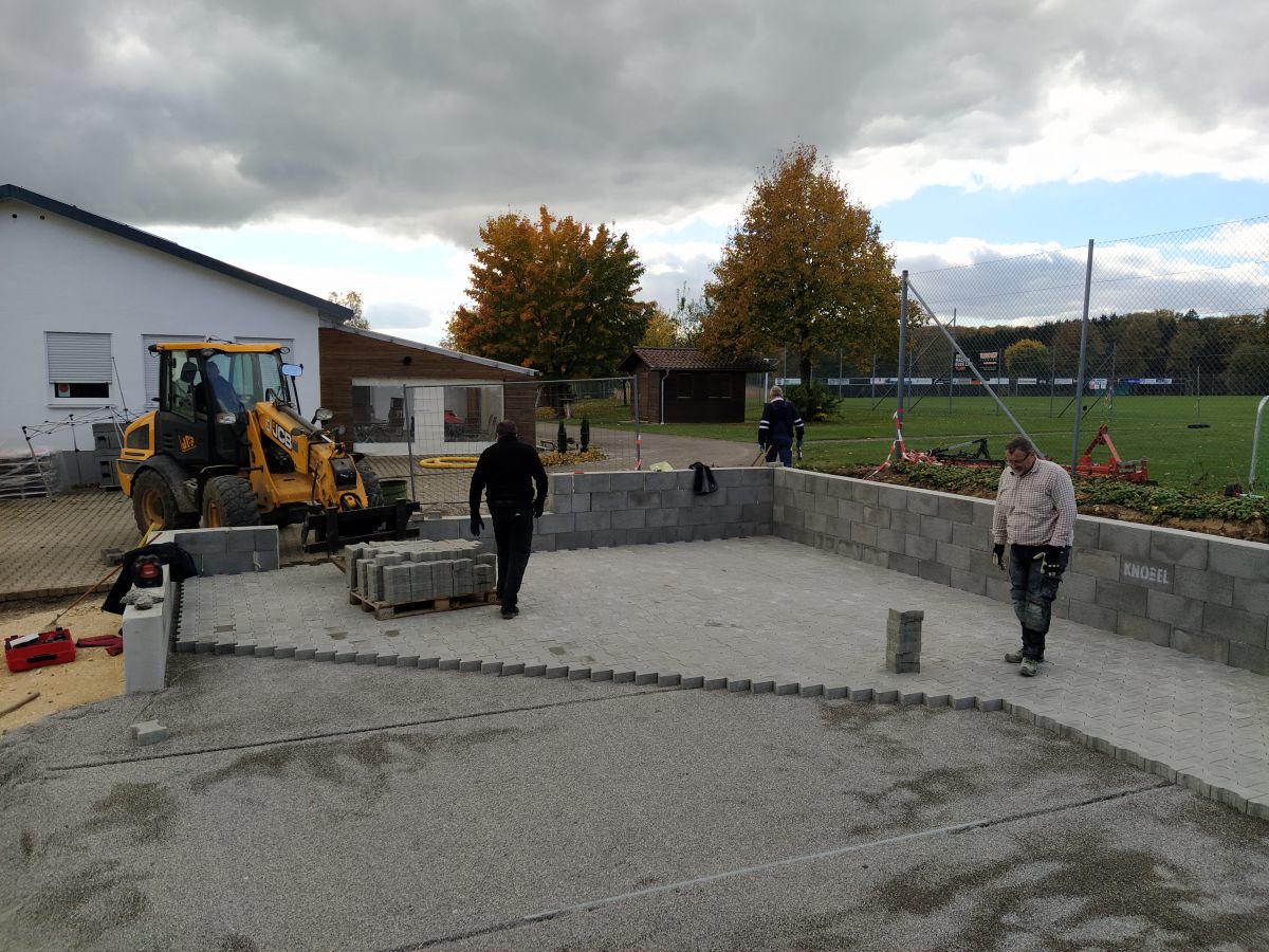 Als dann Anfang Oktober die behördlichen Dinge alle geregelt waren und wir unseren roten Punkt, sprich die Baufreigabe hatten, wurde auch umgehend losgelegt. Am 08. Oktober starteten die Erdarbeiten mit Hilfe von Frank Buntz, eine Woche später folgten die Grundmauern und schon am 23. Oktober konnten wir die Pflasterarbeiten im und vor dem Schuppen beginnen. Zeitgleich startet am 15. Oktober unser Crowd-Funding und brachte bis zum Abschluss am 03. Februar 2022 über 6.500€ ein. Eine wahnsinnig tolle Unterstützung aller Spender, für die wir uns nur immer wieder bedanken können.