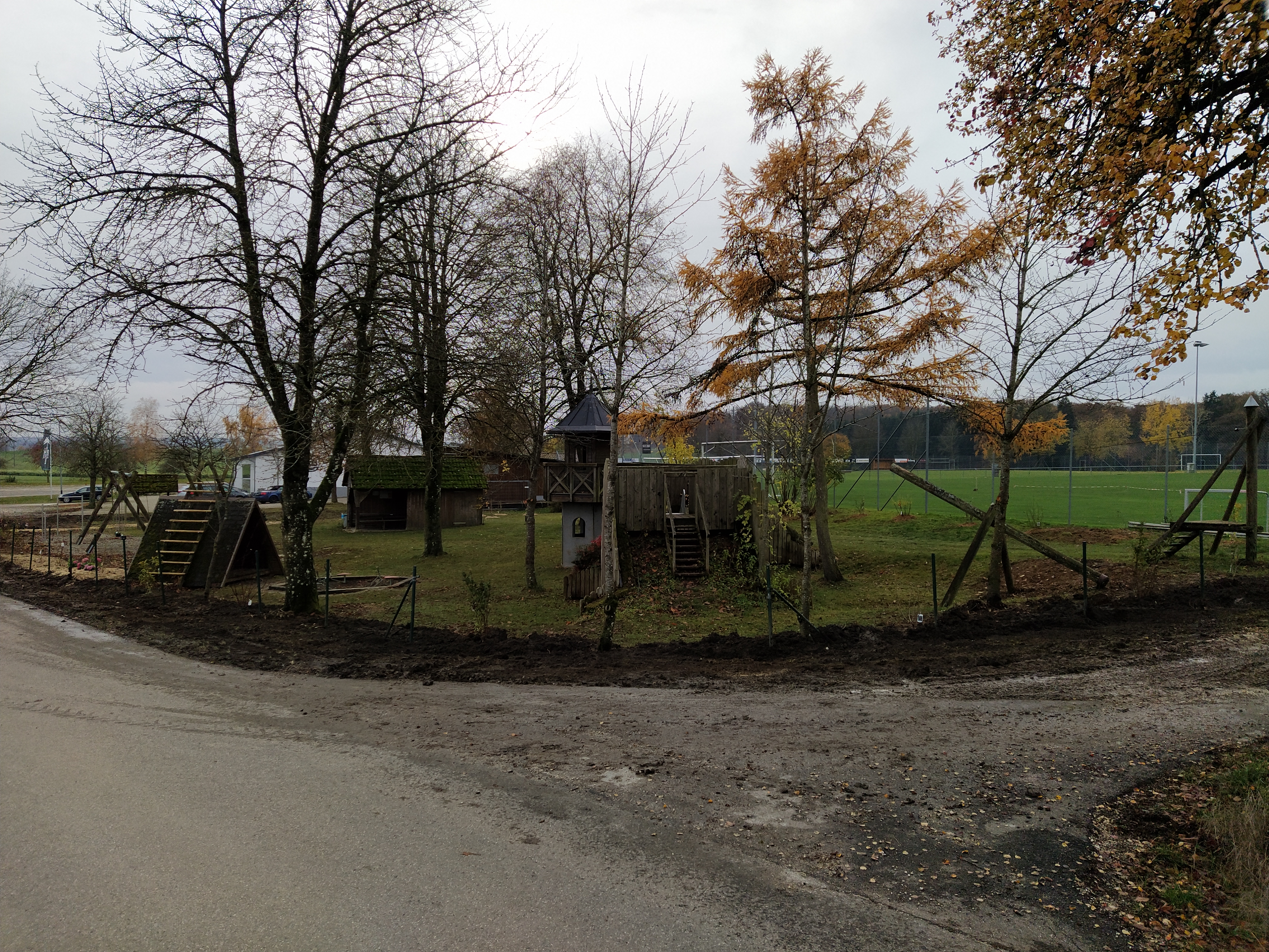 Der Waldspielplatz, der bedauerlicherweise an einer vielbefahrenen Straße liegt und nur teilweise durch einen Zaun gesichert ist, soll durch die Initiative des Vereins zusätzlich mit Büschen und Hecken entlang der Straße abgesichert werden. Dieser Schutz schafft nicht nur eine sicherere Umgebung für die spielenden Kinder, sondern eröffnet auch die Möglichkeit, in der Zukunft eventuell ein Basketballfeld auf der angrenzenden Wiese zu errichten.