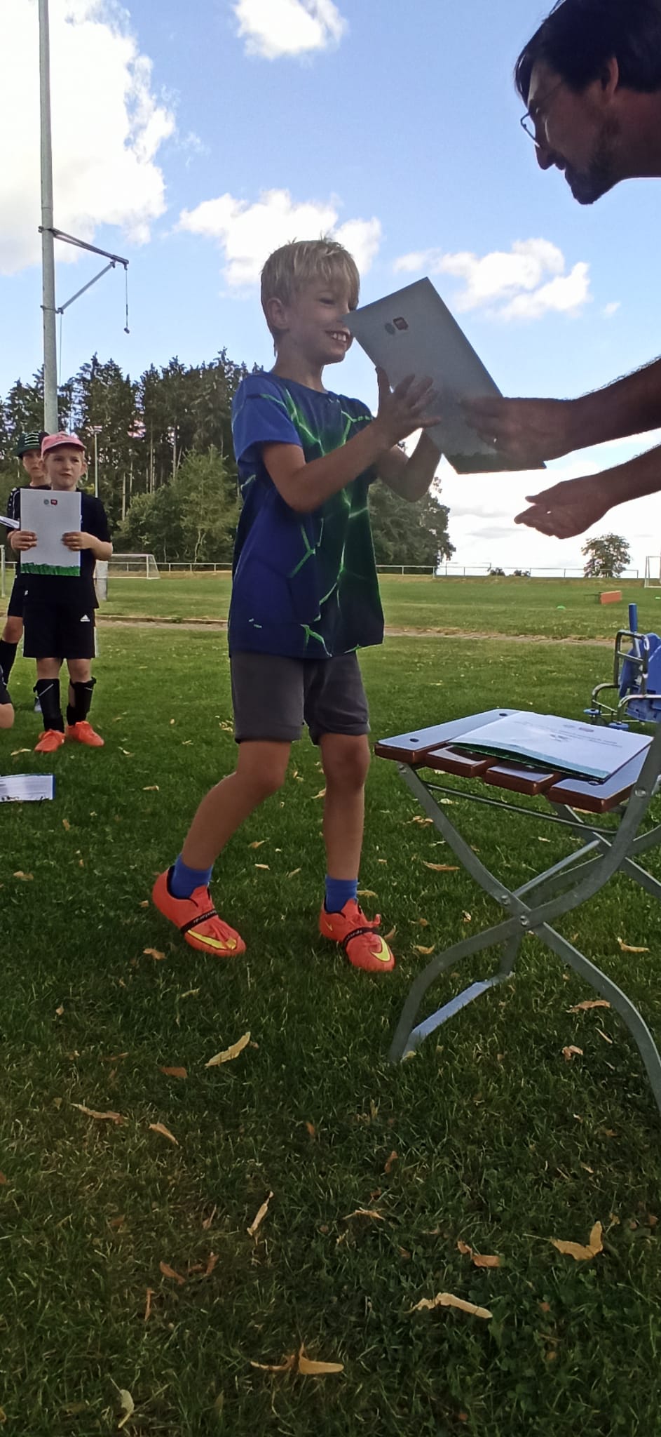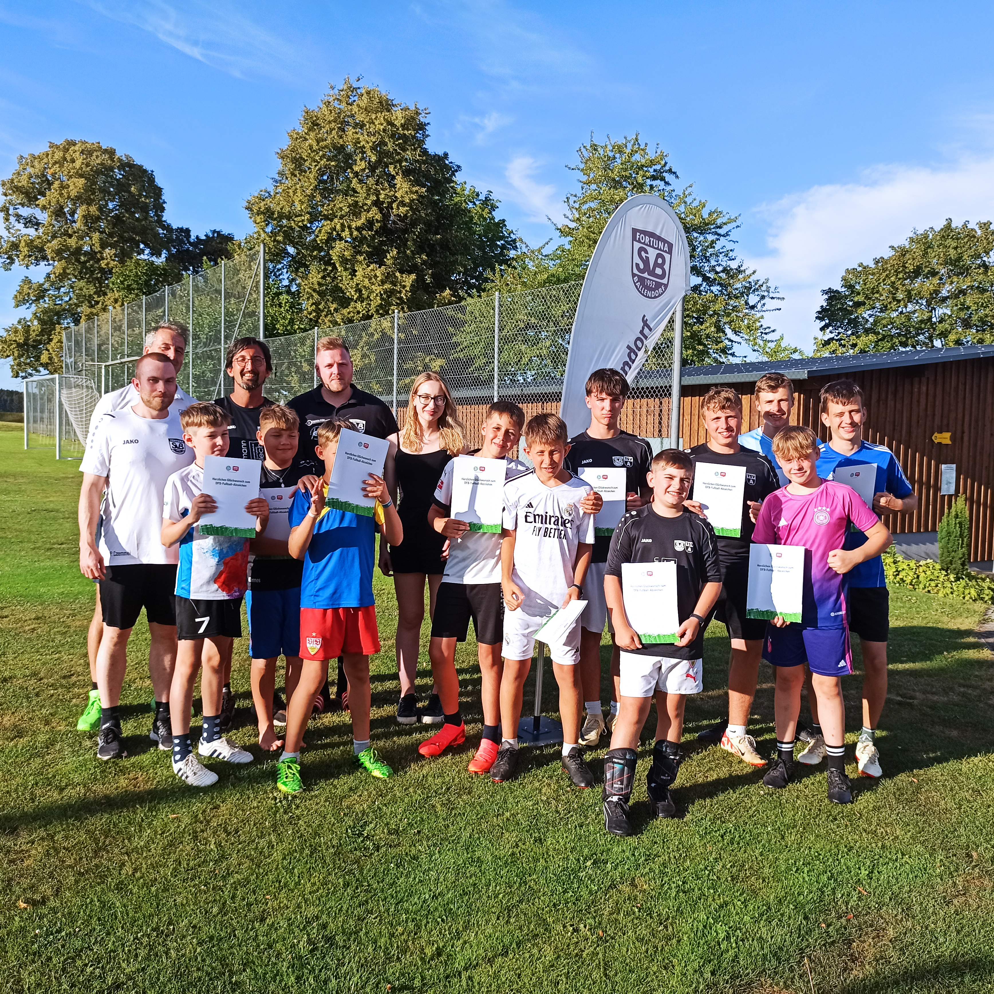 Unser SVB Fussballsommercamp fand dieses Jahr wieder am 09. & 10. August statt. Im Rahmen des Sommerferienprogramms der Gemeinden Ballendorf/Nerenstetten bieten wir immer zwei Camps an. Am Freitag sind unsere "großen" Kicker zu Gast mit unserem traditionellen Burgeressen zum Abschluss und am Samstag unsere "Youngster" ab 5 Jahren. Dieses Jahr hatten wir bestes Ferienwetter und konnten an jedem Tag 15 Kinder begrüßen. Zum Abschluss jedes Camps dürfen alle Kinder sich am DFB Fussballabzeichen probieren. Und da haben unsere Kleinen den Großen ganz schön was vorgemacht. Im Vergleich zu den Großen am Freitag haben am Samstag alle Kinder das DFB Paule Abzeichen mit "Gold" absolviert. Aber natürlich gab es auch am Freitag oft Gold, Silber und Bronze. Keiner ging ohne Abzeichen aus. Darauf waren alle Beteiligten super stolz. Sogar die Presse wurde auf unser Ferienprogramm aufmerksam und hat uns am Freitag besucht. Danke für dem tollen Artikel in der Langenau aktuell.