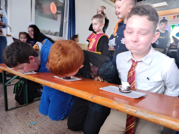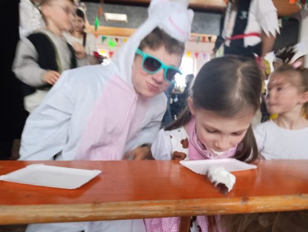 Und nicht nur die Kids haben bis zum Ende alle Spiele durchgezogen, sogar unsere SVB Übungsleiter haben sich beim Salzbrezelnessen gebattelt. Nach endlos vielen Polonaisen durch das Sportheim haben wir unser Programm dann um 17 Uhr mit unserem Ballonregen knallend beendet.